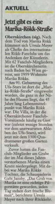 Die Clubleitung erhält viele, lobende Zuschriften und Anrufe — und nicht nur von älteren Rökk-Fans. Ein Brief hat uns besonders berührt; zeigt er doch, daß unsere Marika auch heute noch eine Vorbildfunktion hat.